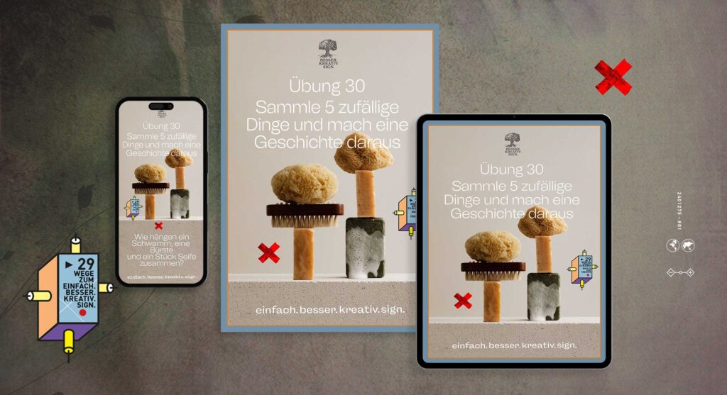 Indem du mit zufälligen Objekten arbeitest, löst du dich von der Angst vor dem leeren Blatt. Dein Gehirn wird trainiert, kreative Verbindungen herzustellen – ganz automatisch.