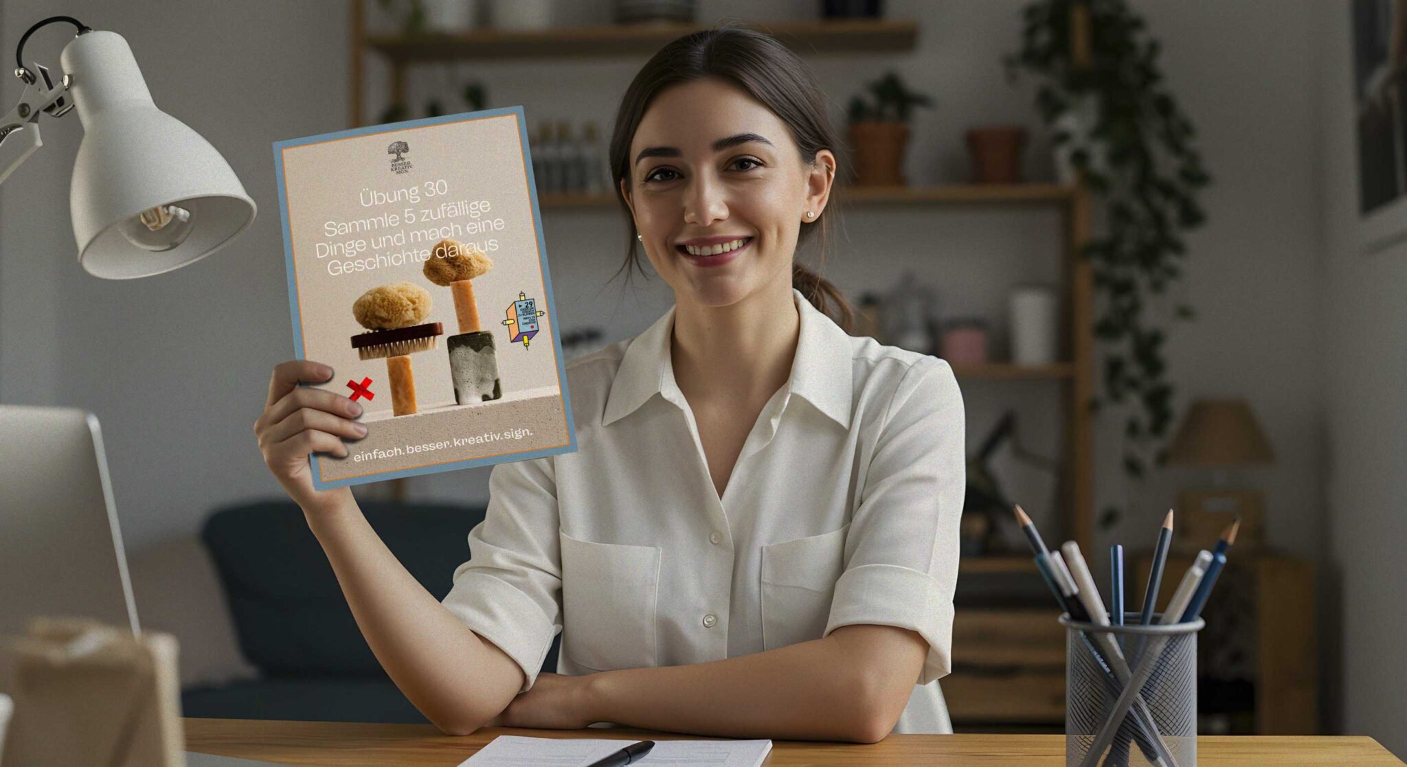 ➡️ Gerade wenn dein Alltag stressig ist, sind kreative Übungen eine perfekte Möglichkeit, abzuschalten und neue Energie zu tanken. Schon 10 Minuten genügen, um frische Ideen zu entwickeln!