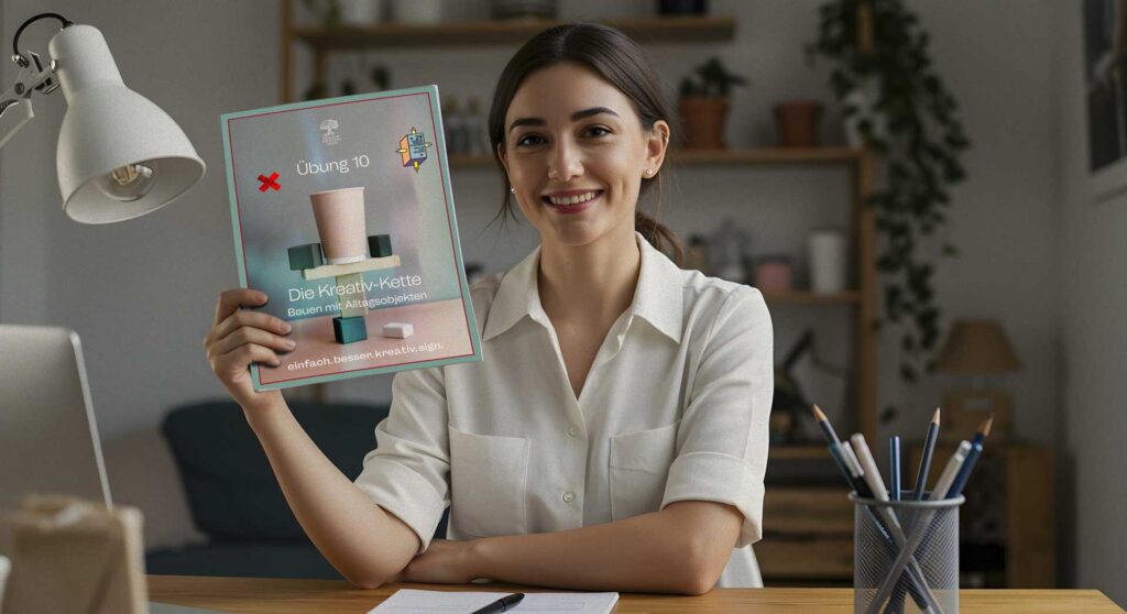 ✅ Perfekt! Die Kreativ-Kette wurde speziell für Menschen entwickelt, die schnell und effektiv neue Denkweisen finden wollen. Viele der Übungen dauern weniger als fünf Minuten – und der Effekt kann ein echter Gamechanger sein!